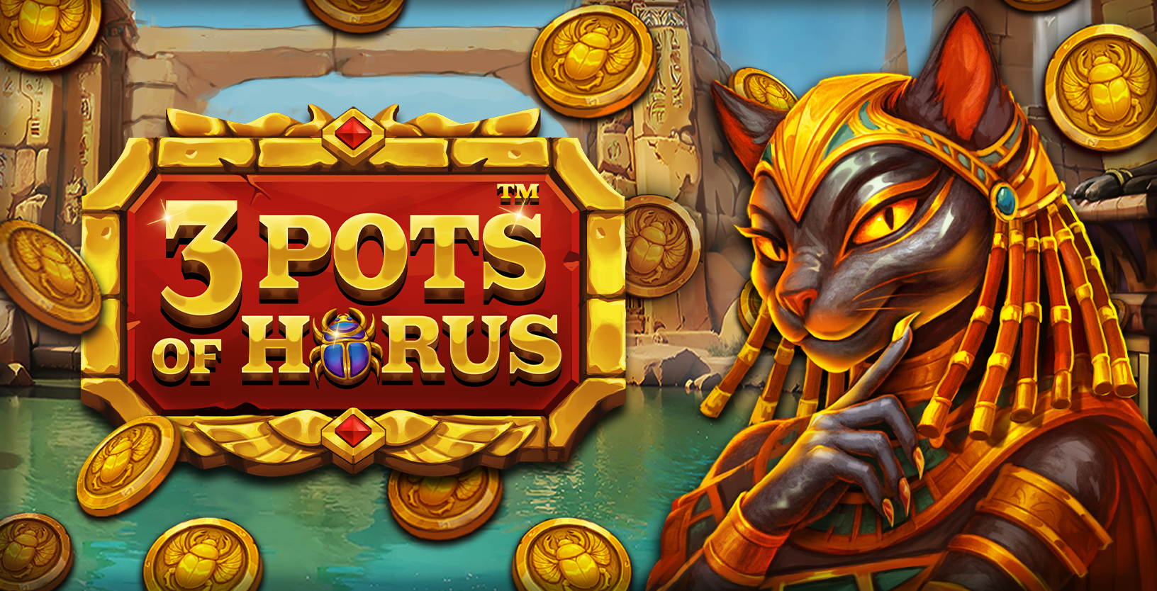 3 Pots of Horus by Games Global invites players into a mystical Egyptian realm where Horus, Anubis, and Bastet guard three powerful bonus pots. Played on a 5×4, 40‑line layout, the game features Cash Collect coins worth up to 50× and three color‑coded pots—Bronze, Silver, and Gold—each triggering unique respin bonus rounds. Collect symbols sweep up coin values, while deity‑driven modifiers heighten tension with extra spins, boosted rewards, and escalating jackpots. With its immersive visuals, modern collect mechanics, and a towering 20,000× max win, 3 Pots of Horus blends ancient mythology with high‑impact slot excitement.