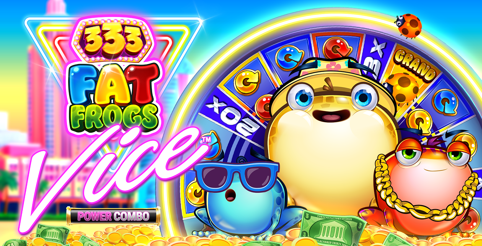 333 Fat Frogs Vice Power Combo splashes neon‑soaked, Miami‑style vibes across a 5×3, 20‑line grid where three flashy frogs power layered bonus action. Collect tokens to trigger Free Spins, Multiplier Spins, and Jackpot Spins—or combine them via the signature Power Combo™ for super‑charged rounds. Expect mystery symbols, a bonus wheel, static jackpots, and up to 40 free spins, all building toward a sizzling max win of 12,500×. With medium volatility and rapid hit frequency, this feature‑rich slot blends cartoon swagger with high‑energy mechanics for endlessly replayable sessions. Dive into Vice City flair—and let the frogs do the hustling.