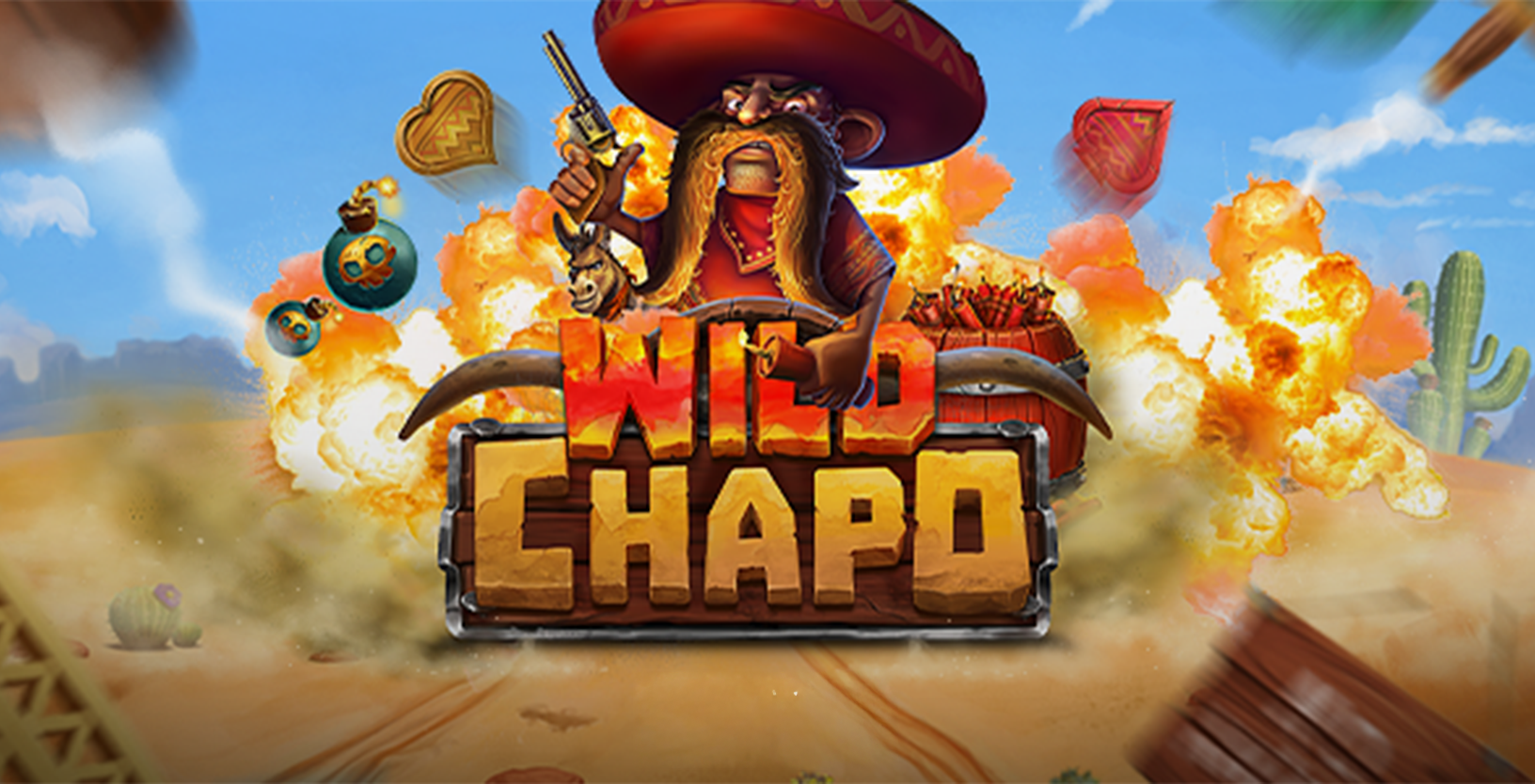 Wild Chapo by Relax Gaming blasts players into a fiery Mexican desert where dynamite, tequila, and cartoon‑style chaos rule the reels. Played on a 5×3 grid with 15 paylines, this explosive slot features expanding TNT wilds, sticky wild respins, and climactic free spins where collected bonus symbols transform into wilds on the final spin for massive win potential. Colorful characters—donkeys, owls, dogs, and the unpredictable Chapo himself—bring humor and energy to every spin, supported by cinematic animations and a lively mariachi‑inspired soundtrack. With its high‑volatility thrills and standout wild mechanics, Wild Chapo delivers a fast‑paced, feature‑packed desert adventure.